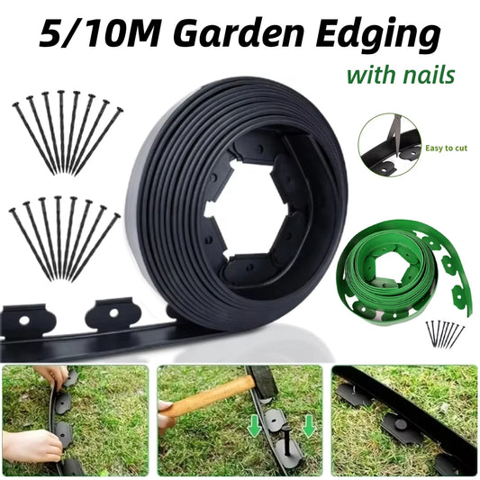 5/10M Fixed Garden Barrier with Spikes Flexible Lawn Edging Kit Plastic Landscape Edging Border Grass Stone Isolation Belt Tools