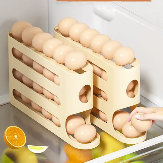 4 Layers Automatic Rolling Egg Holder Rack Fridge Egg Storage Box Container Kitchen Refrigerator Egg Dispenser Fridge Organizer