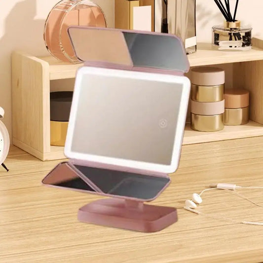 portable Three-stage 180 Rotation Table Mirrors Makeup Mirrors with LED Lights 3-color tunable LED lighting With magnification