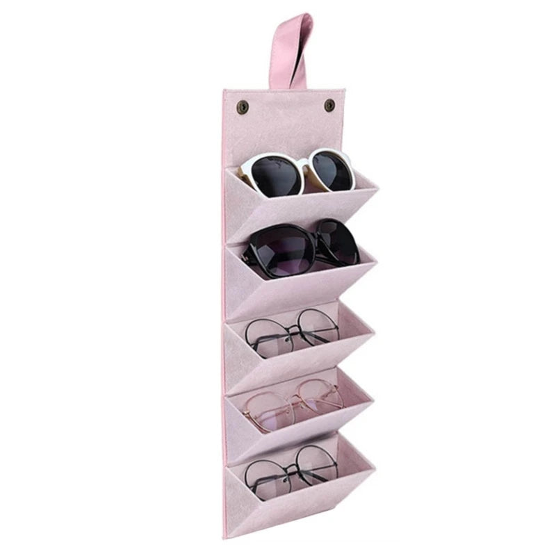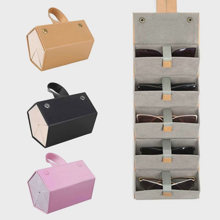 Portable Sunglass Display Case Foldable PU Eyeglass with 5Slots for Travel Jewelry Storage Eyeglass