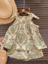 2024 Girls Summer Floral Two-Piece Set – Halterneck Sleeveless Top & Refreshing Shorts | Casual Cotton Blend Outfit for 3–12Y
