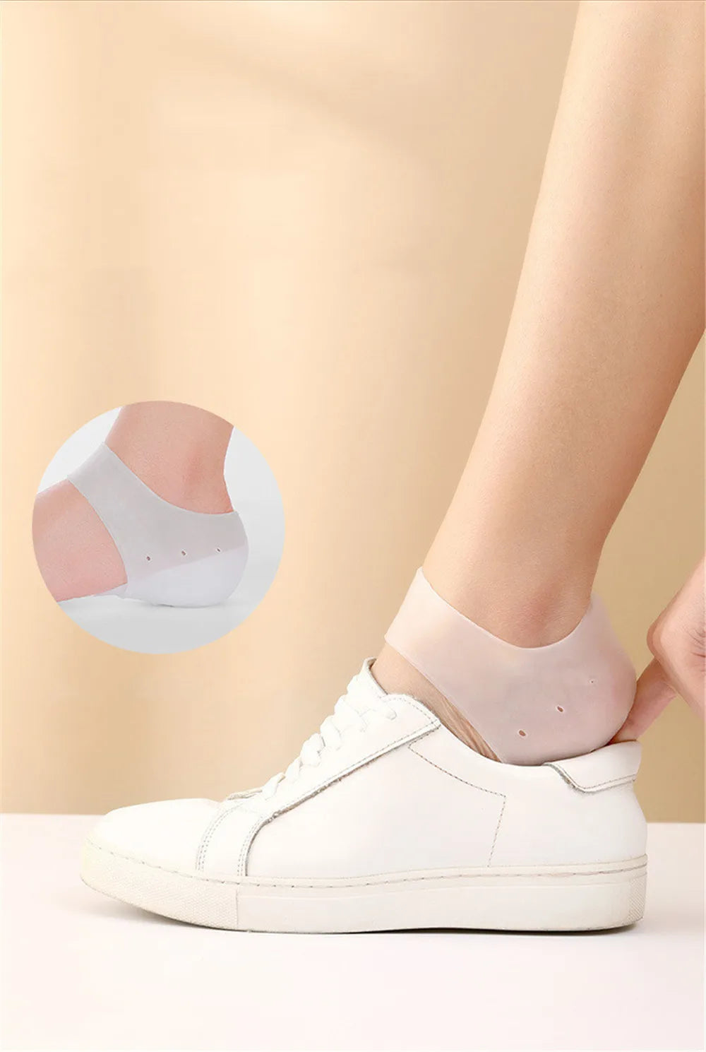 2Pcs Silicone Feet Care Socks Moisturizing Gel Heel Thin Socks with Hole Cracked Foot Skin Care Protectors Lace Heel Cover