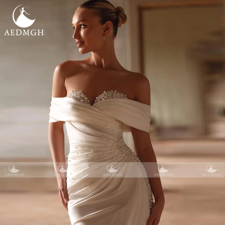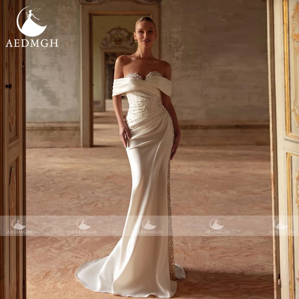Aedmgh Mermaid Sexy Wedding Dresses For Women Sweetheart Vestido De Novia Matte Satin Detachable Train Custom Made Bridal Gowns