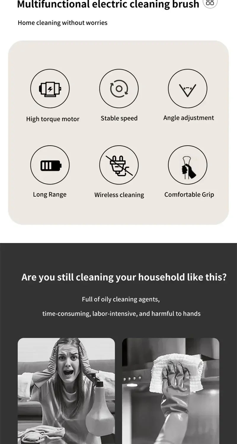 Electric multifunctional household kitchen bathroom glass long and short dual-use brush, handheld powerful cleaning brush