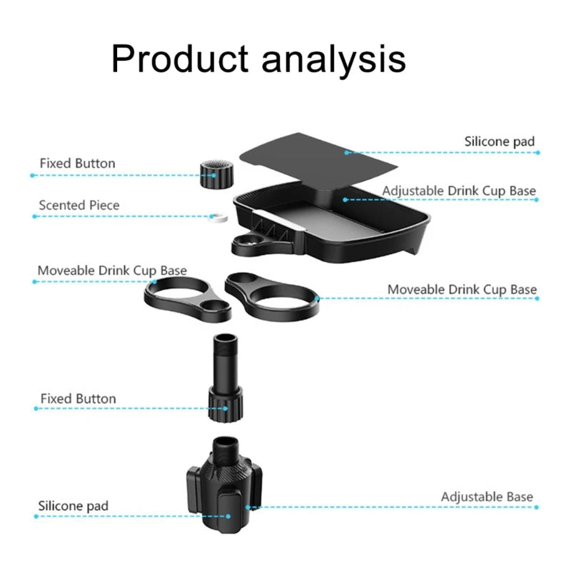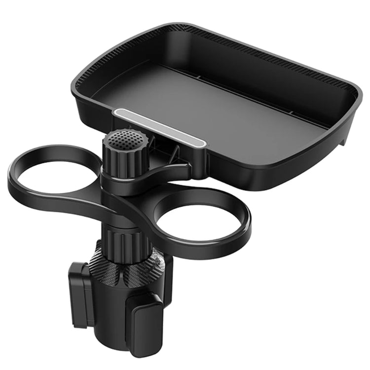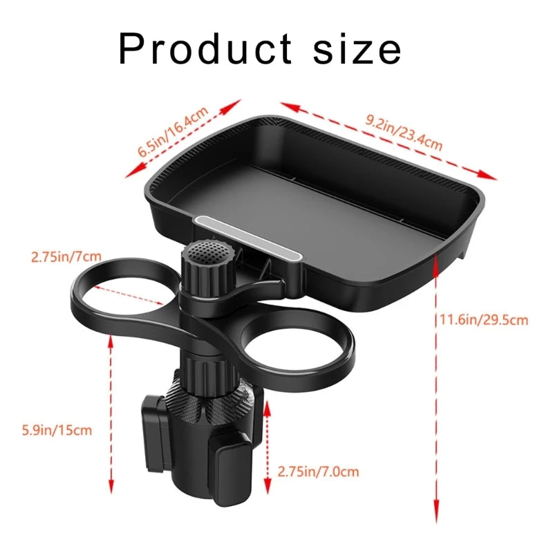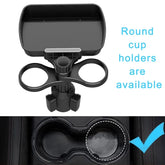 QM82 Car Cellphone Holder Adjustable Clamp Double Cup Holder Expander Snack Tray Drink Bracket for Horizontal Vertical Views