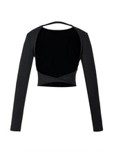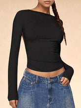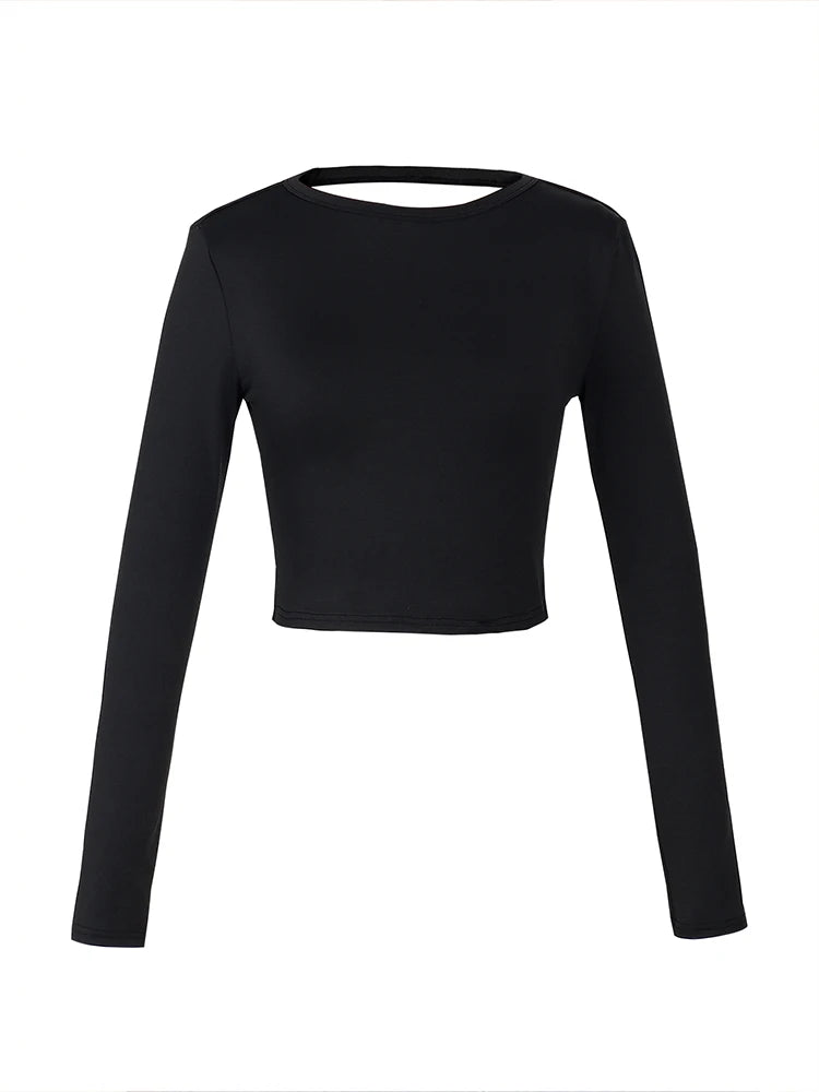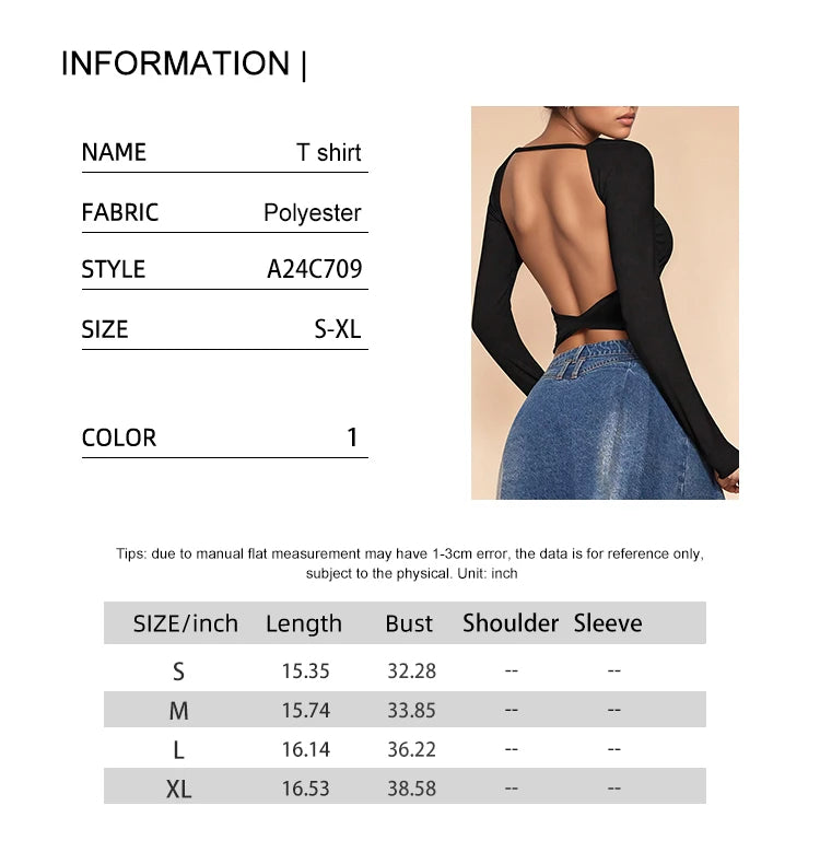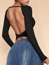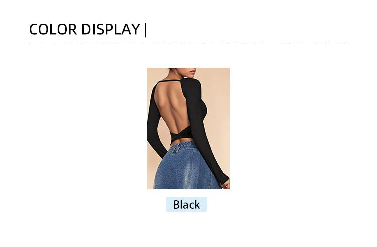 Women Open Back Top Long Sleeve Ribbed Backless Top Shirt Chain Backless Crop Tee Tie Backless Crop Tee