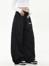 Zoki Letter Hip Hop Cargo Pants Women Streetwear High Waist Y2K Pleated Trousers American Vintage Oversize Loose Bf Casual Pants